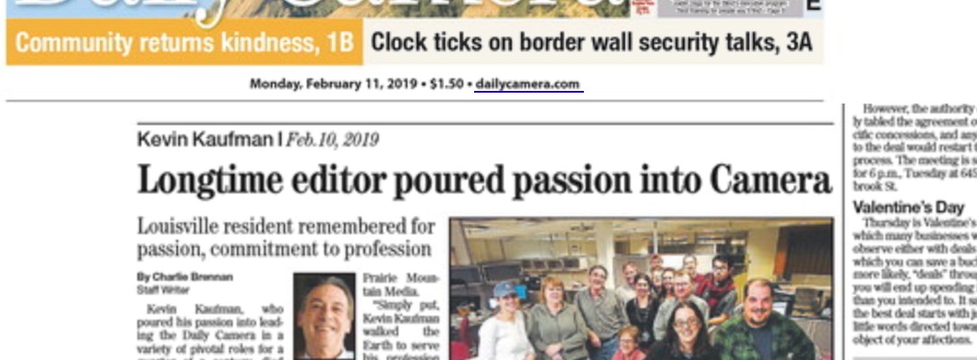 But Boulder had Kevin. When news of Kevin’s death first broke earlier this month, journalists who actually had worked for Kevin started to write columns, fire off Tweets and post on Facebook. Journalists like me, who never worked for Kevin, also chimed in, shocked and saddened at his, what seemed like, sudden passing.