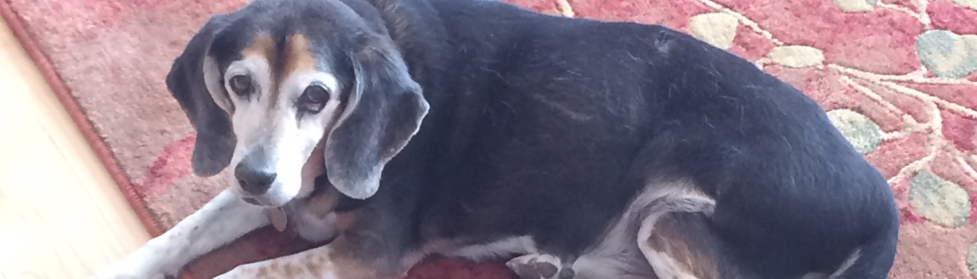 He had a cancerous and non-cancerous tumors removed. He survived an unfair attack by two off-leash rottweilers at the neighborhood park. In 2013 alone, he had a tumor removed from his right thigh and dislocated his left hip sliding off the dining room table hunting down a sandwich my in-laws had left unattended.